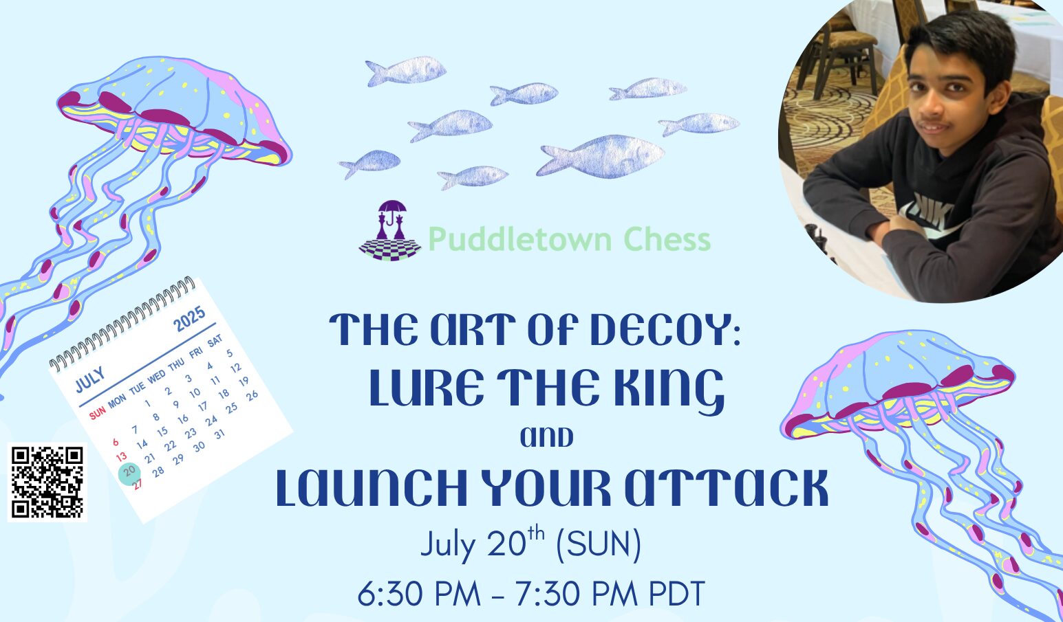 <p class="">Welcome to Pudddletown’s 2025 July Webinar hosted by founder Ishaan Kodarapu! During this highly interactive session, Ishaan will share some key strategies to help our young chess players improve their game.</p>
