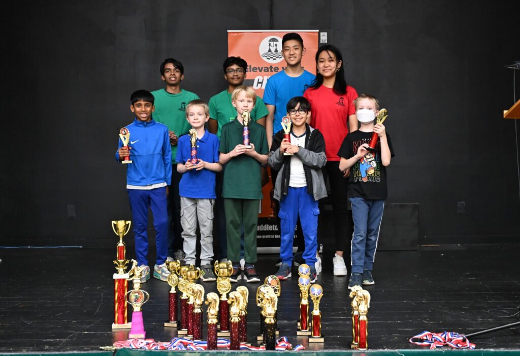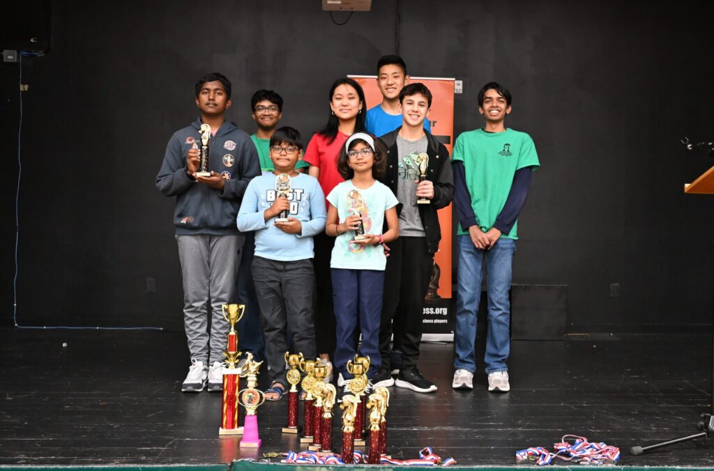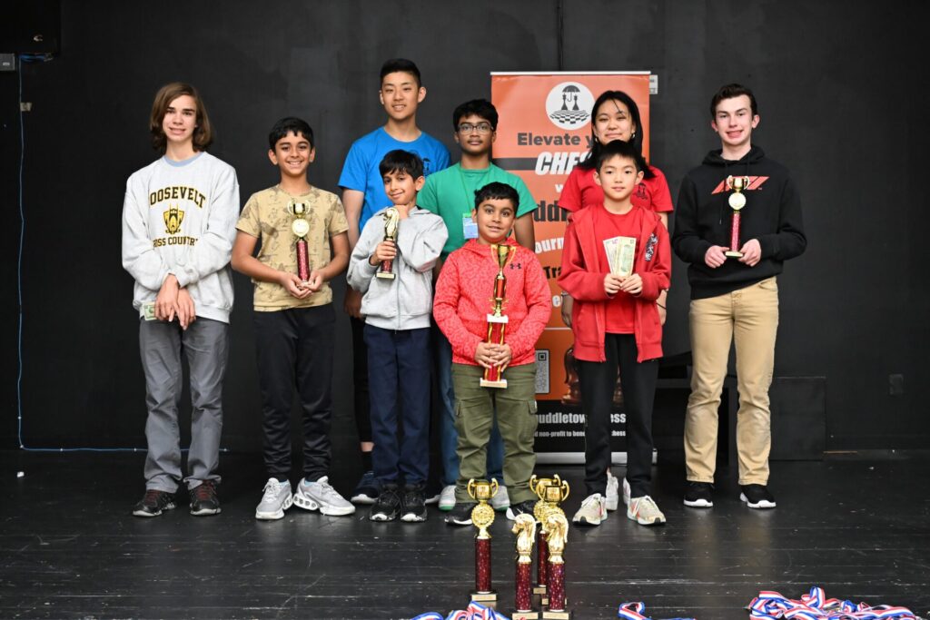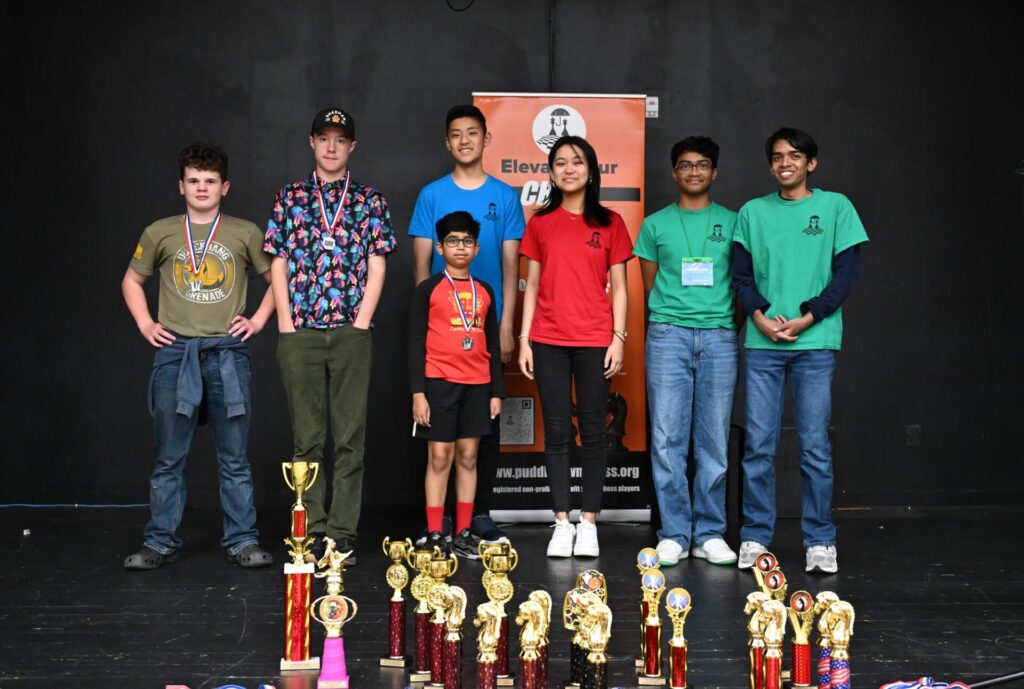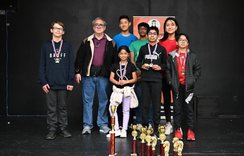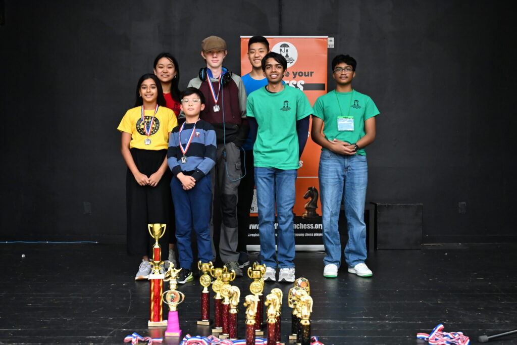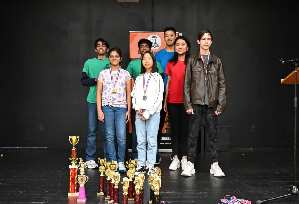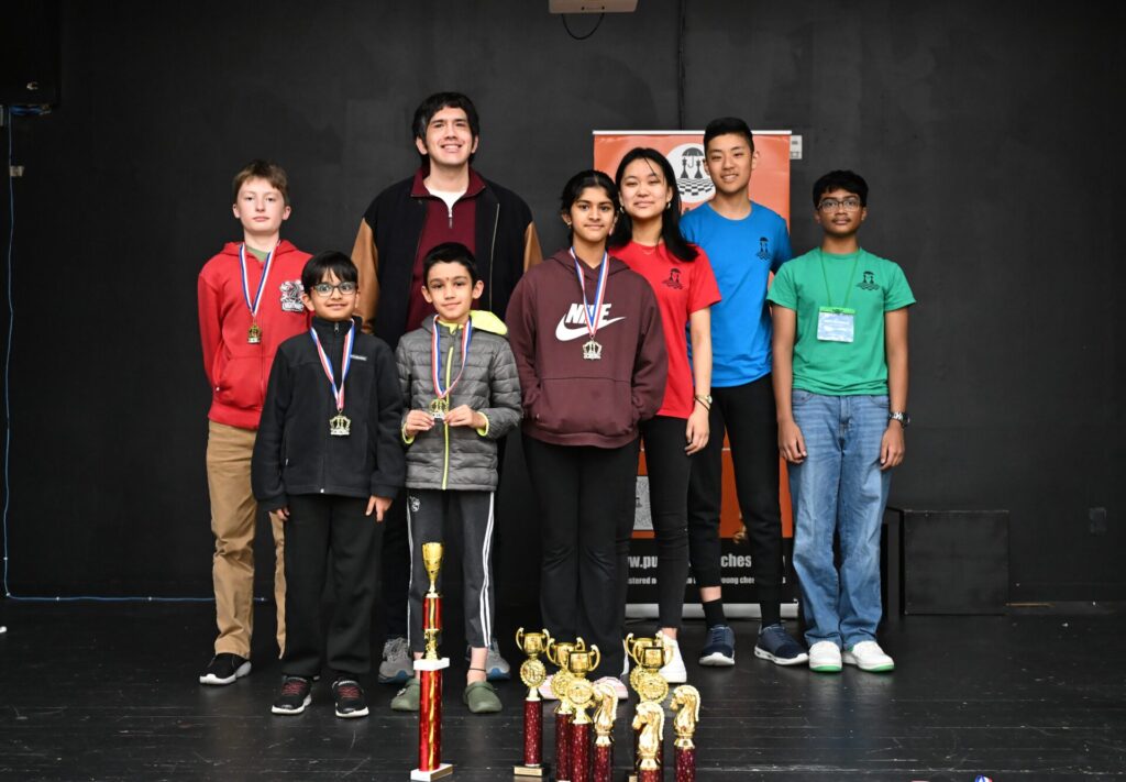 One fun story: after the main award ceremony, many people left. However, many others walked through the “secret” hallway to the Open section room. To my surprise when I arrived, I saw siblings Lucas and Olivia both still playing, but against different opponents! All four remaining players were low on time, and a huge crowd gathered silently around both boards as the final moves played out. Lucas vs Weg was a tense draw, while Olivia fought well but ultimately lost to Mr. Pedram. A well-deserved round of applause followed.
